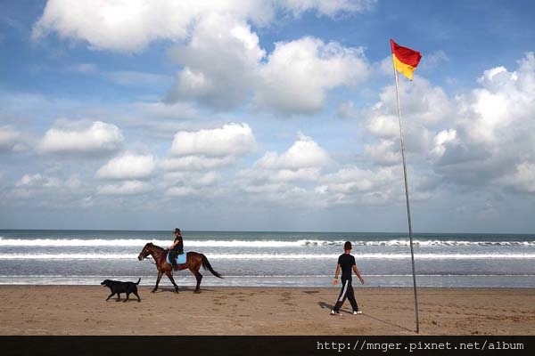有騎馬兼溜狗的,也有人在鬆軟的沙灘上慢跑著--這樣跑很舒服喔~~